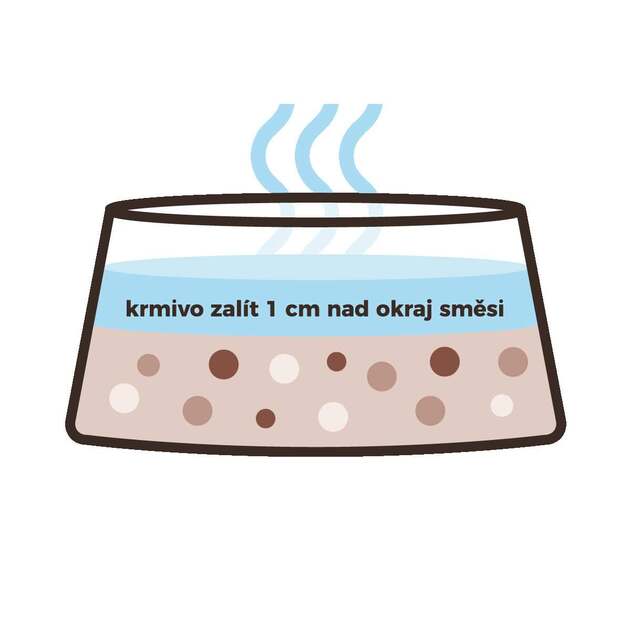 Jak podávat Krmivo zalijte horkou vodou 0,5 až 1 cm nad úroveň směsi a nechte několik minut nasáknout a vychladnout. I když se už jedná o kompletní krmivo, můžete přimíchat i další maso z konzervy Bohemia nebo jiné ingredience dle libosti.