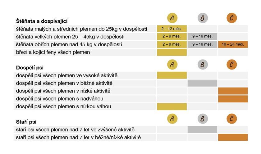 Receptura je vhodná pro štěňata plemen, která budou mít v dospělosti více jak 45kg a je u nich důležité zajistit pozvolný vývoj zejména kvůli kloubnímu aparátu. Krmivo doporučujeme dospělým psům s tendencí k nadváce, či s nadváhou. Vhodné pro seniory v běžné aktivitě.